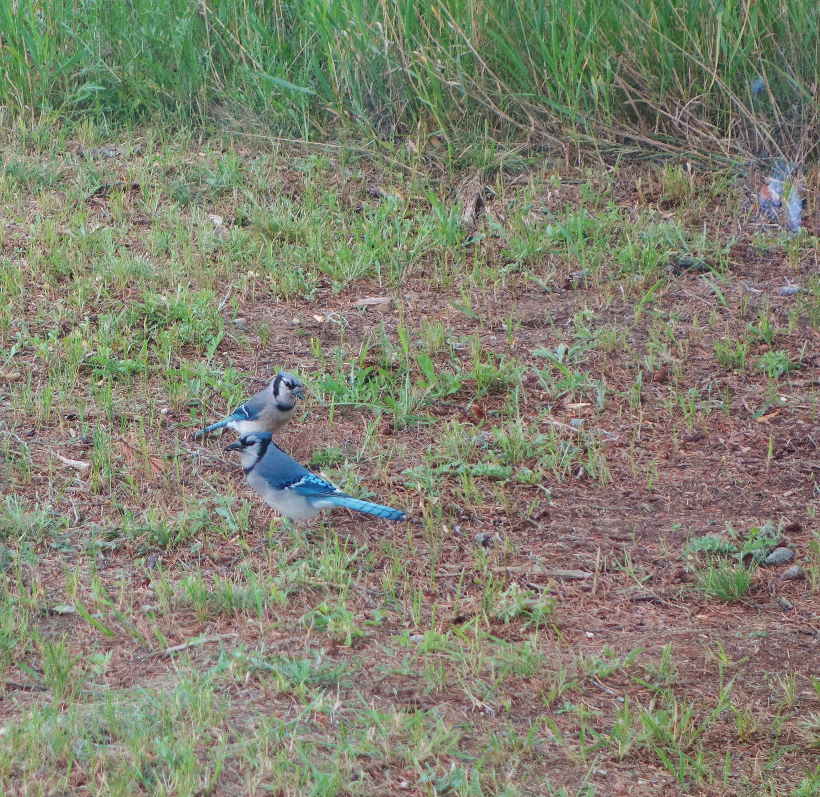 I saw two blue jays hopping in my front yard and took it as a sign. This was a week or so before heading to South Dakota for Grandpa’s memorial service. The service was held on June 23, and prior to I was stressing. It would be my first time back in South Dakota since Flying out of Sioux Falls back to California. Gramps wouldn’t be there. I didn’t want to be there. The morning of the two blue jays I descended from my loft to use the facilities and turn on the radio. I just woke up, and I don’t typically take too much time to look around that soon out of bed. I had hands on the ladder, after taking my morning pee, with plans to go back to the loft when something made me look up. I looked straight out of the window, past the photos of family, my smiling father, sister, grandparents, the last photo I took of Norman Knispel, and I saw two bright blue birds. It took a second to identify them. It was like I was seeing the blueness of a blue jay for the first time. I stepped off the ladder, slowly, and just watched them scratch at the ground, searching out food. After a minute I realized I wanted a photo so I reached for my camera. I got two pictures of the jays before they took off.