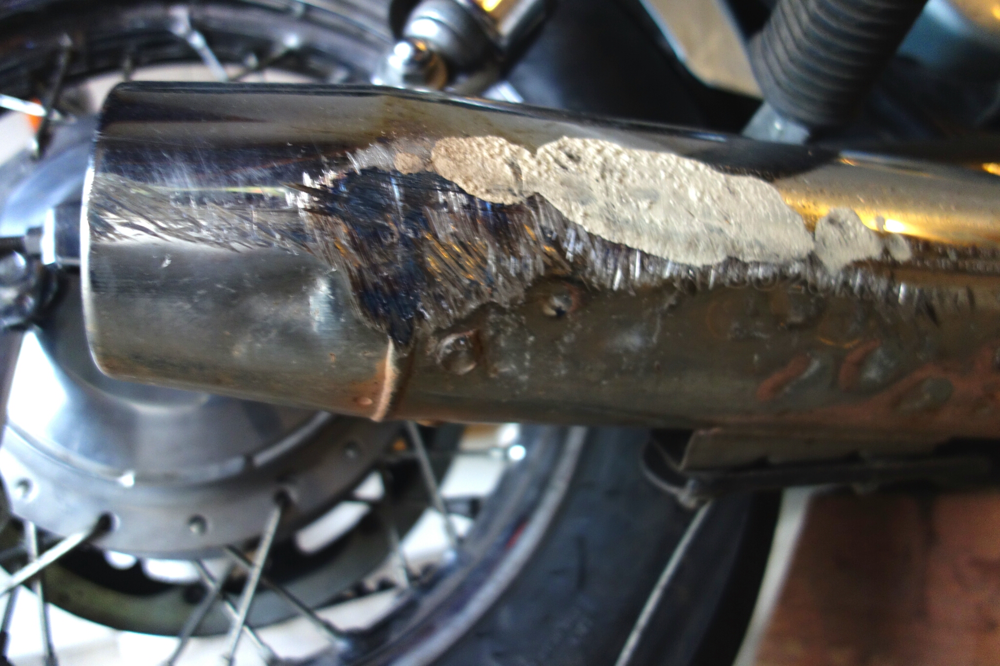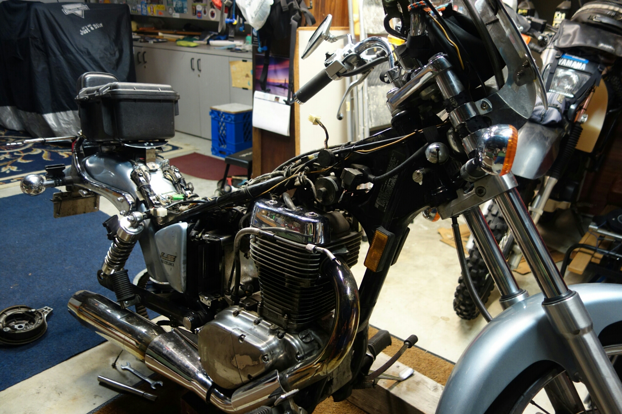 Russ arrived an hour later. He arrived on his BMW GS 1200 while we were eating lunch. We shook hands, exchanged names, and he and my hosts found a comfortable conversation that spoke to their close friendship. When lunch was done we went out to the disassembled Little Wing and Russ had a look. Intial fears seemed to be realized as Russ made a first assement. He thought the valve cover bolt was a head bolt and scared the beejeesus out of me telling me that it couldn’t be fixed easily. After confusion was dessimated by further explanation Russ took it back.