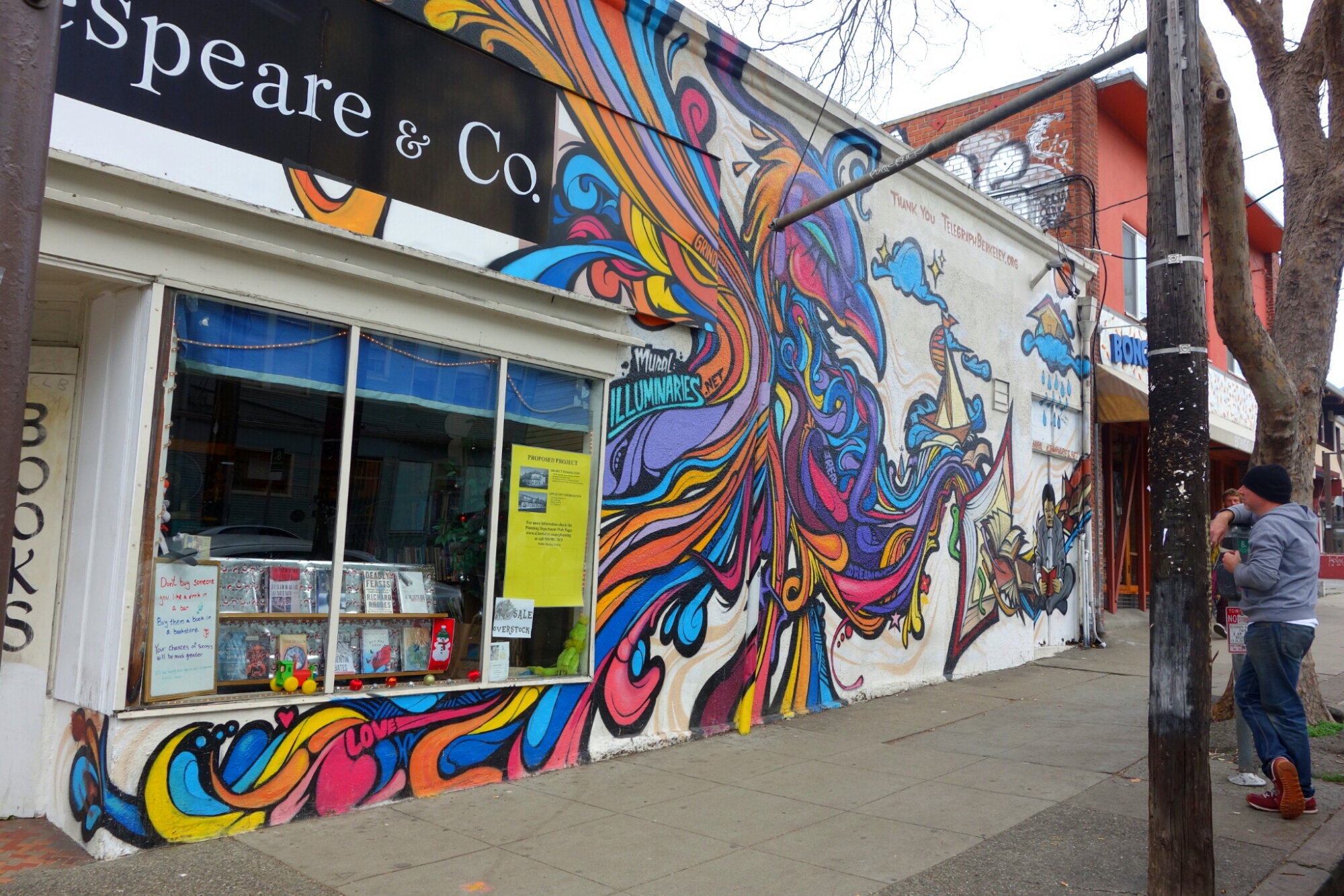 Well, how does and adventurous gal respond? Hesitation, of course! I told him I wouldn’t know where to go, I wouldn’t know what to look at. He told me Telegraph Avenue, and as I waffled about, Marilyn came along and told me to go, so I did.