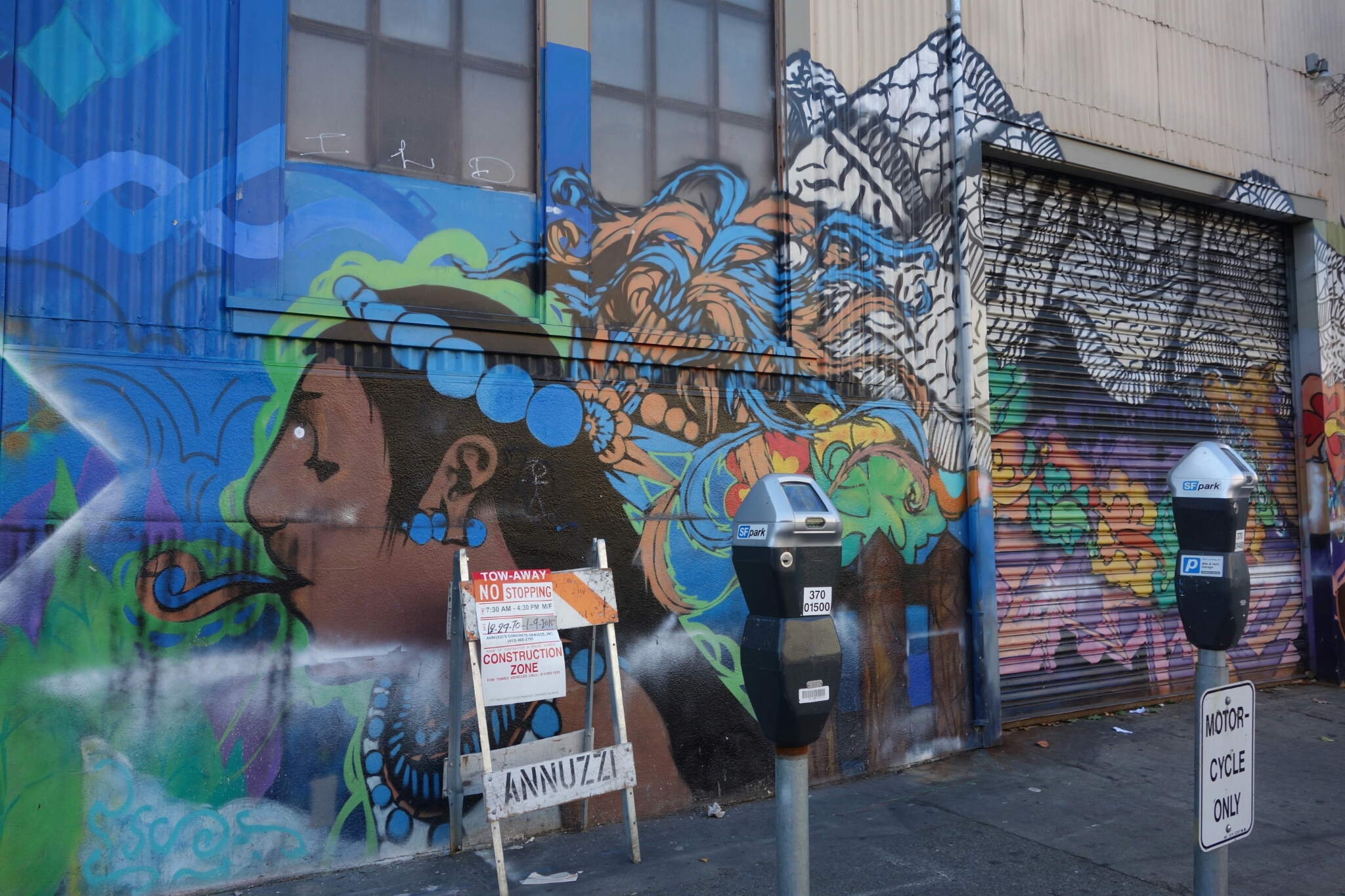 David considered whether we would be better off checking out architecture (something he is interested in because he works as a handyman when he isn’t doing his art) or art. I informed him I wasn’t any good at decisions and pressured him into deciding. Art won out because of traffic, and on the way back to his truck we made a few more detours to check out more art. One of the detours led us down an ally where there was graffiti all about. I loved it and we chatted about it. After the graffiti filled mural I think David was more confident in his choice of art over architecture. The area that we went to was downtown Oakland, where the architecture is stunning anyway. There were murals everywhere and graffiti as well. I felt as though we got to see it all.