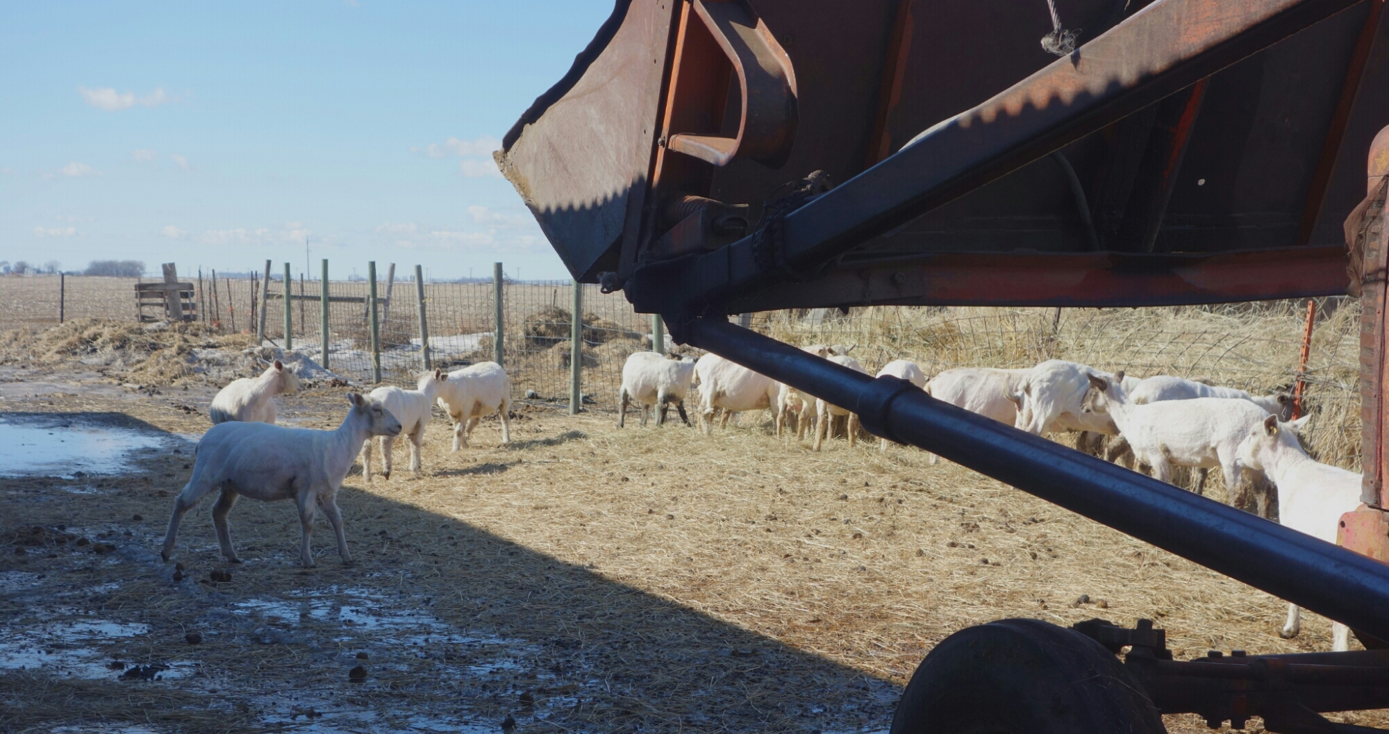 On Sunday we sheared the sheep at my grandma’s place. Actually, she hired someone to shear the sheep while I just stood by and held the gate. The men, my gramps and Dad, wrastled with the sheep to get them out to the shearer. Grandma sorted the wool as it came off the newly naked critters, and I stood by to assist and open and close the gate. There was one point where I failed to complete my task. Instead of opening and closing the gate I stepped over to grab a pile of freshly cut wool and hand it to Grandma. Meanwhile the boys had a hold on a particularly feisty older gal and as they struggled with that sheep the flopping gate made for the perfect getaway for a young yearling, that I have since coined Skippy. We watched this youngin bound out of the barn and make her way towards the outside sheep who were eagerly munching grain.