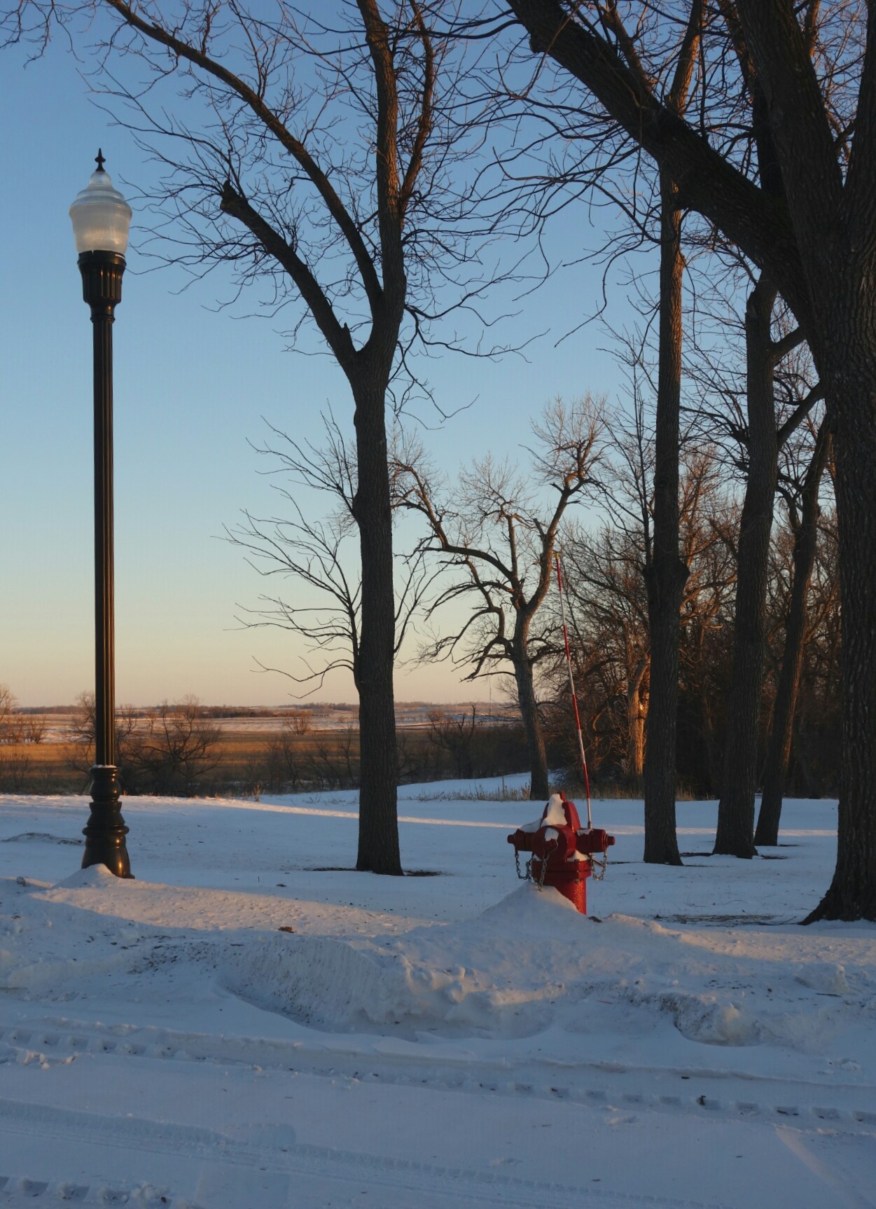 I put on my coat and went outside to capture photos of the sunset. It was practically impossible because I was in Minnesota and everywhere I pointed the camera (especially in the western direction where the sunset was at) there were trees. I did see typical Minnesotan fire hydrant though so I caught a picture of that.