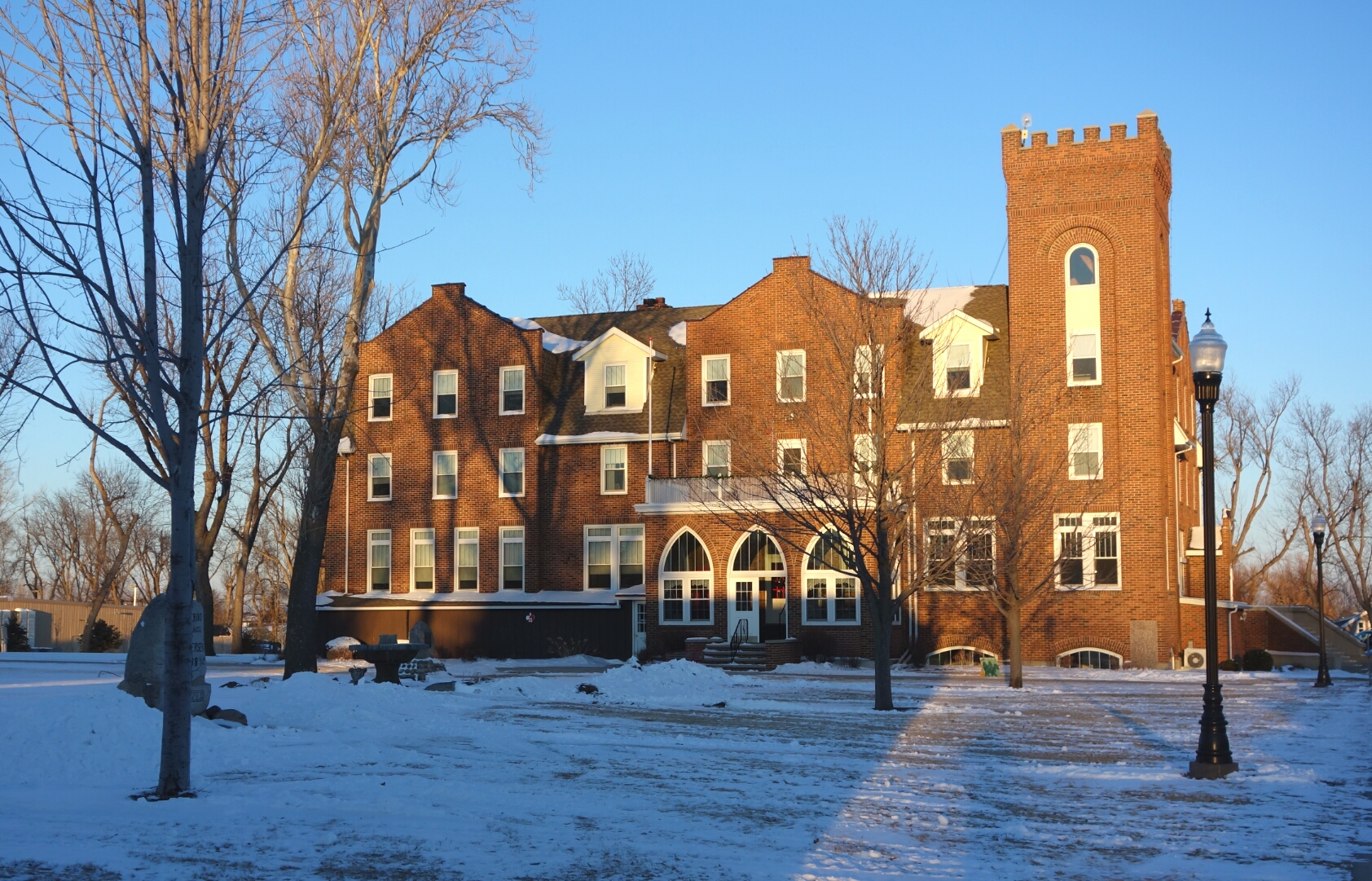I decided that now was the perfect time to go and explore my secret again. I had my coat on the sun was setting, I wasn’t getting a good photograph at ground level so maybe the tall parapett would do me better. I walked back into the Danish Folk School and made my way back to third floor. I climbed the ladder, opened the trapdoor and climbed the second ladder. Camera in pocket, I pushed on the second trapdoor and found that it wasn’t hinged, it was like a lid on a box, it came right off. I slid it off to the side and I climbed through the hole it left. The parapett was brick and I was pleased to see that it was exactly like any castle I had ever imagined. This, my first parapett, did not dissapoint. I crawled onto the roof and slid the trapdoor over to keep the chill out of the building. When I stood up I could see the sunset better than I had anywhere else. I felt like a queen.