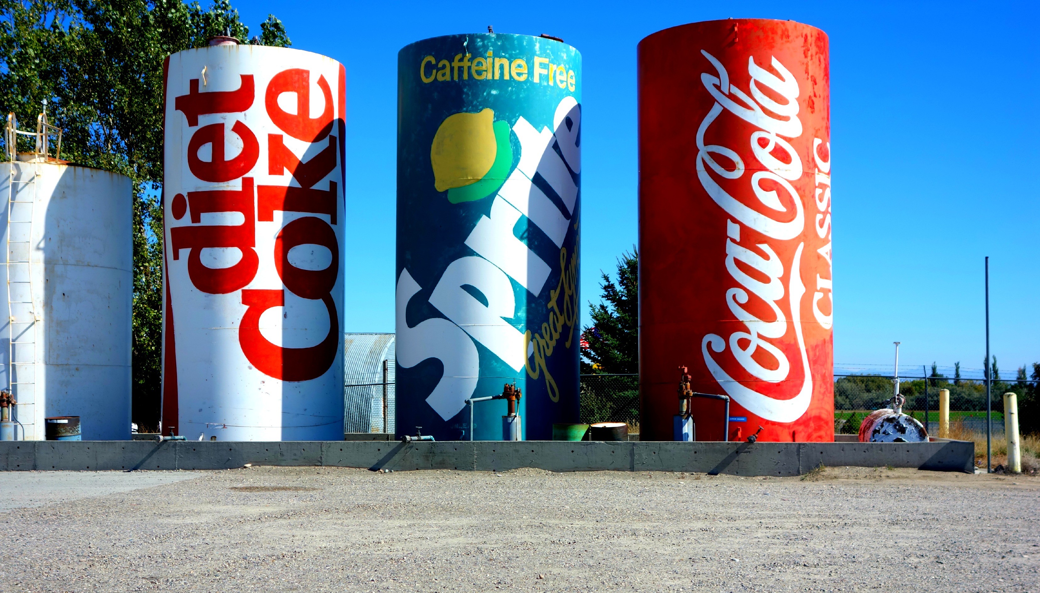 A gas station in Osgood, WY had these beautifully painted popcans.