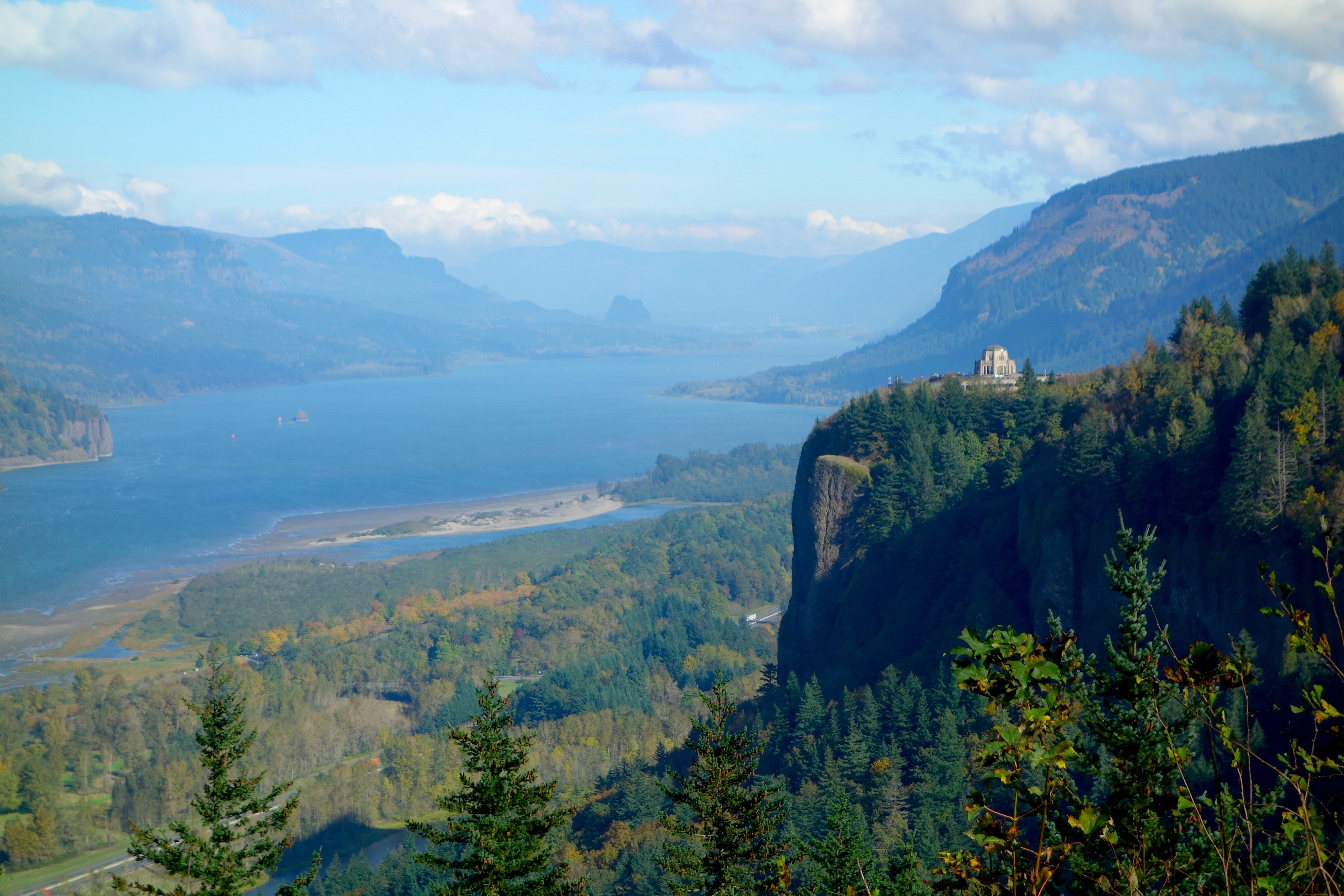 Old Highway 30 is a beautiful curving road in Oregon. It is perfect for a motorcycle. Little Wing got to test it on a sunny day, a rare thing this time of year in Portland, Oregon. This is a view of Vista Point and the Columbia River. Right across the River is Washington.