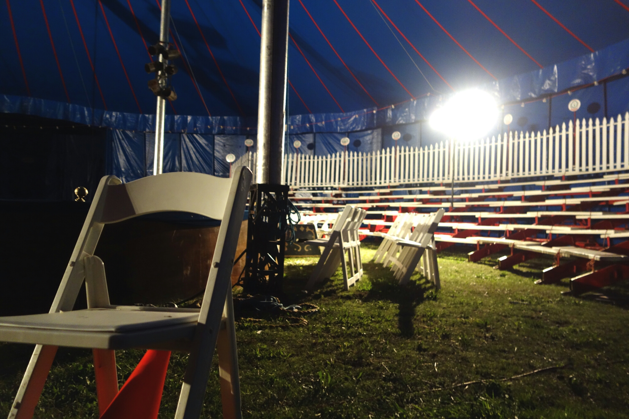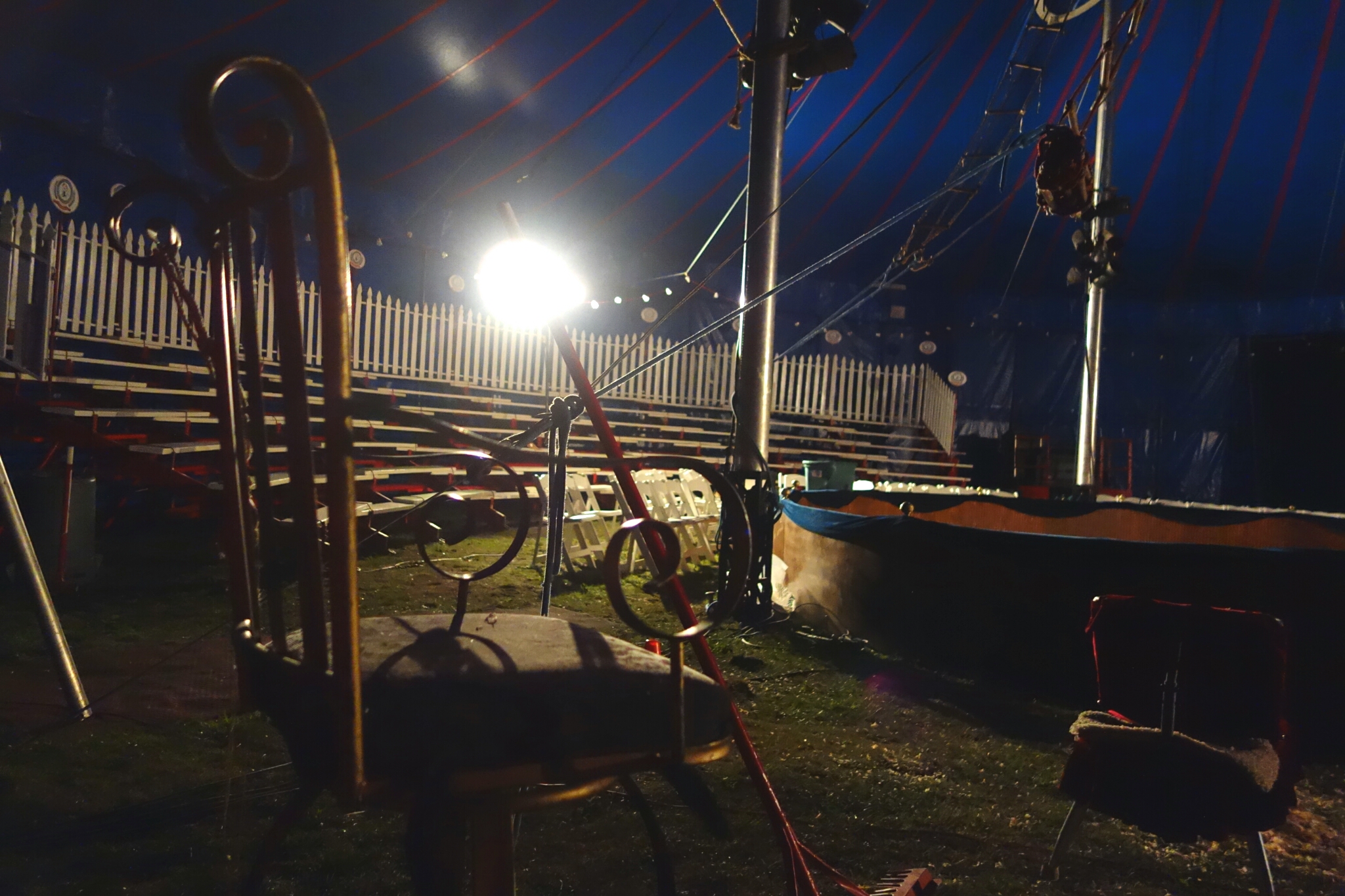 The grand circus tent from the inside. The tent does not appear as large when all the seats are empty, but it is all the more beautiful.