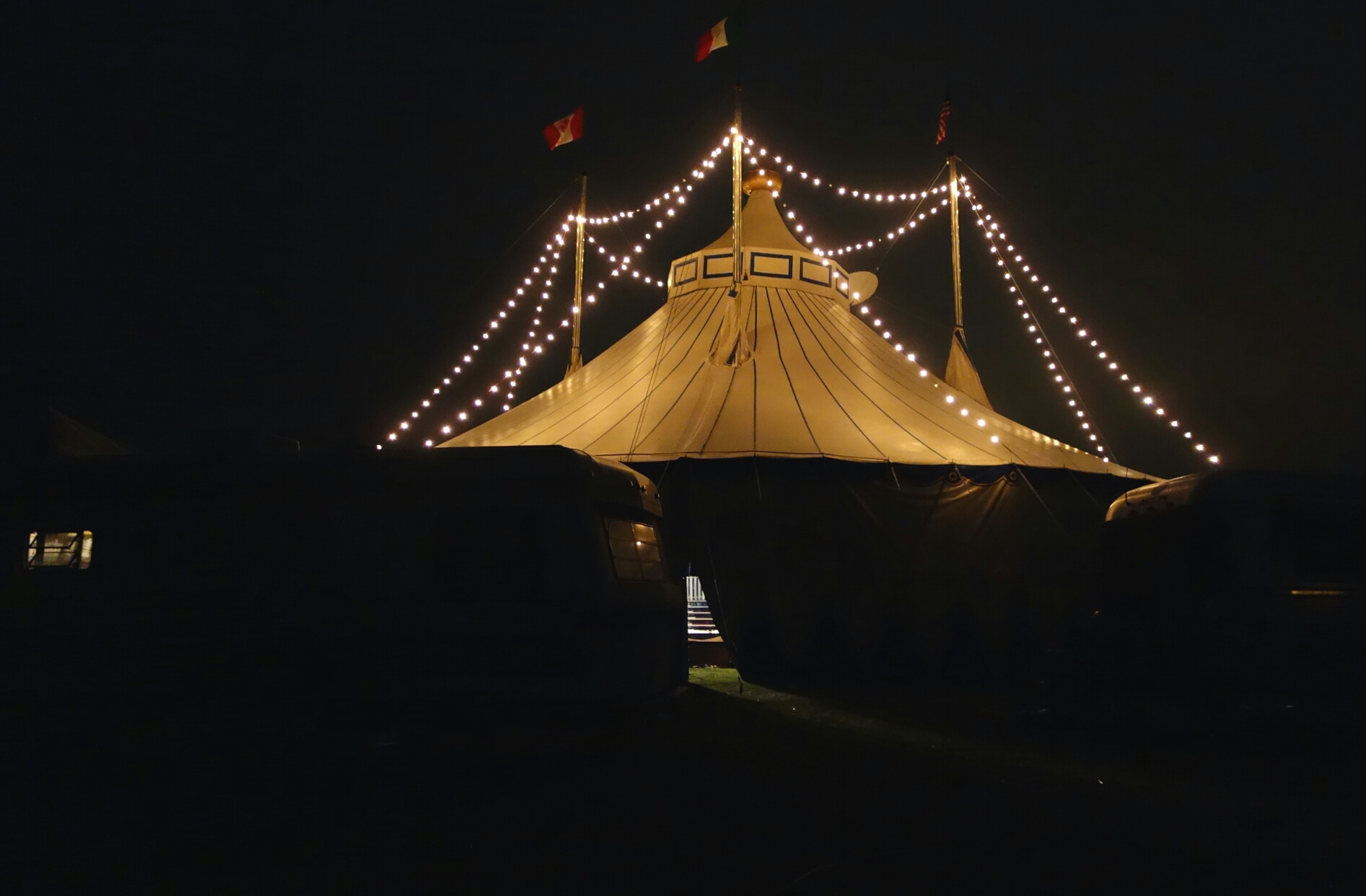 The magic of circus lights is increased a thousand fold by the darkness of night. Add star light and a few Airstream trailers to any scene, and one has the making of a fairy tale... or something like that.