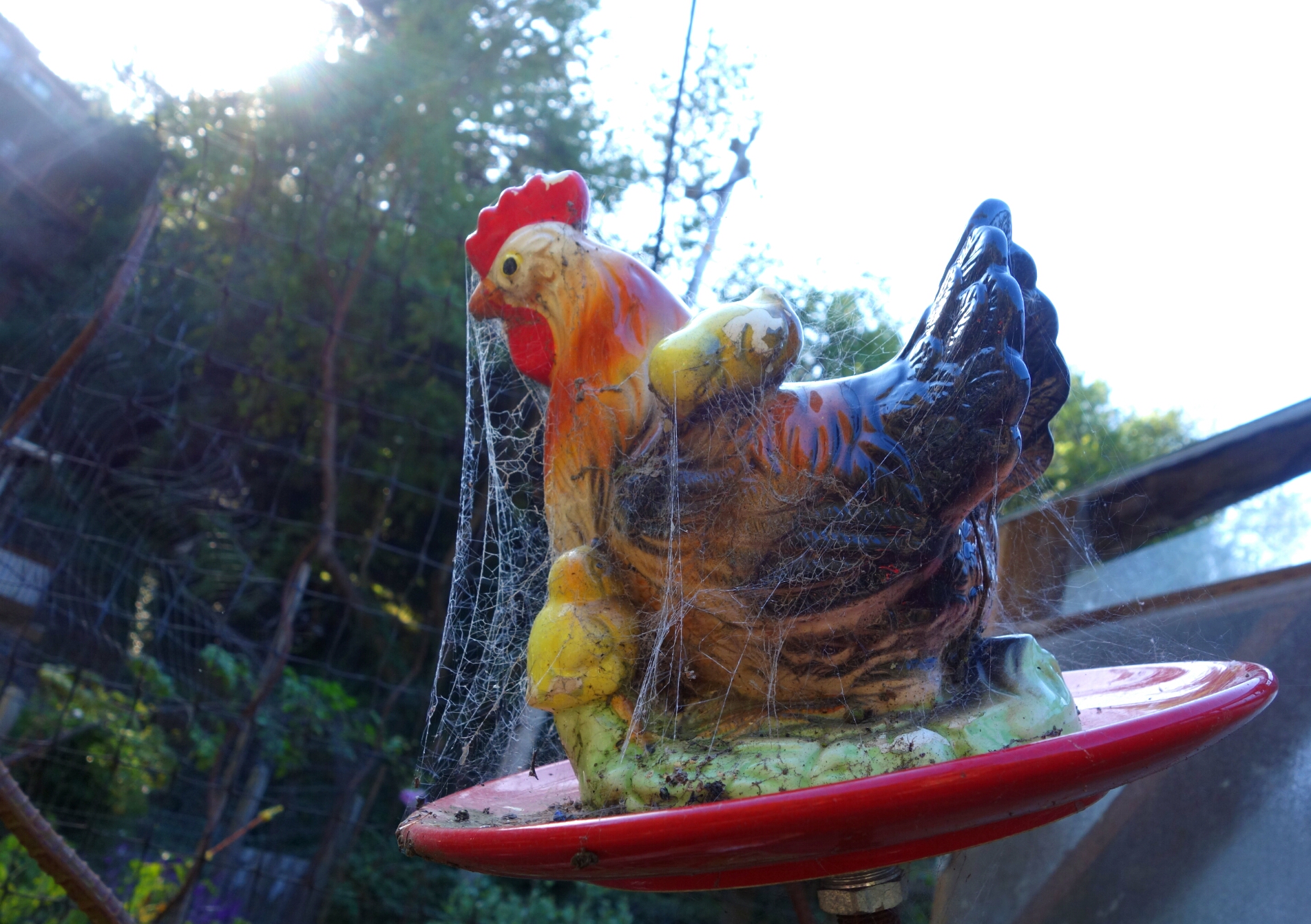 My hosts have chickens and they also have these beautiful chicken flowers. It seems I am not the only one who admires them, but then again spiders are known for their taste in winged critters.