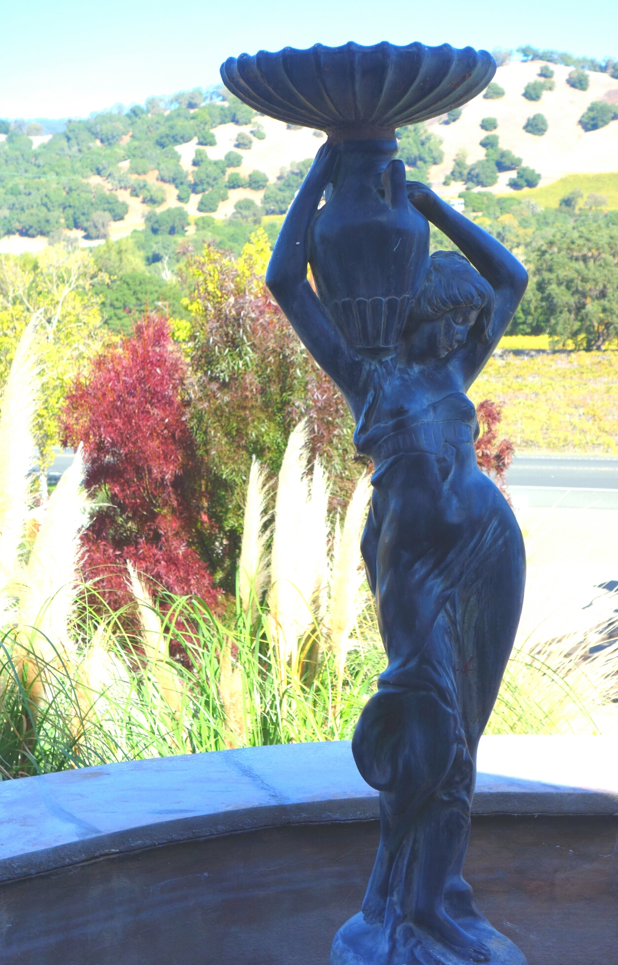 The first vineyard with a wine tasting that I have toured was in between San Francisco and Mendocino. It had beautiful vineyards and art and this lady. However I'm not sure how the wine was because Little Wing doesn't like me when I'm drinking.