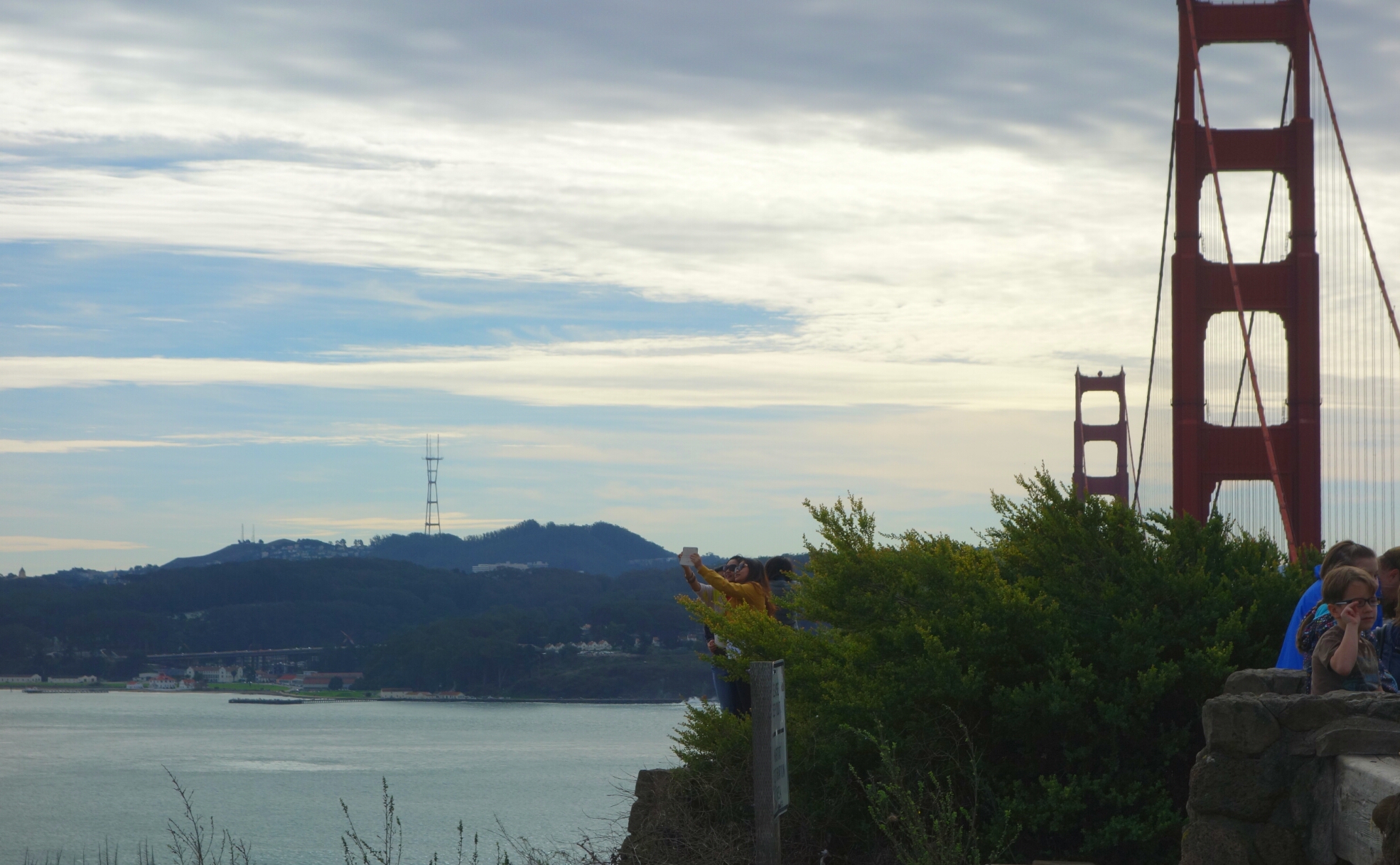 I didn't get a great snapshot of the Golden Gate bridge, but I had a great ride across it, for only $5 with the toll. Anyway my somewhat decent shot of the bridge captures the spirit of the bay, that I observed, with a group of teenage Asian gals getting a Selfie in front of the great feat of engineering.