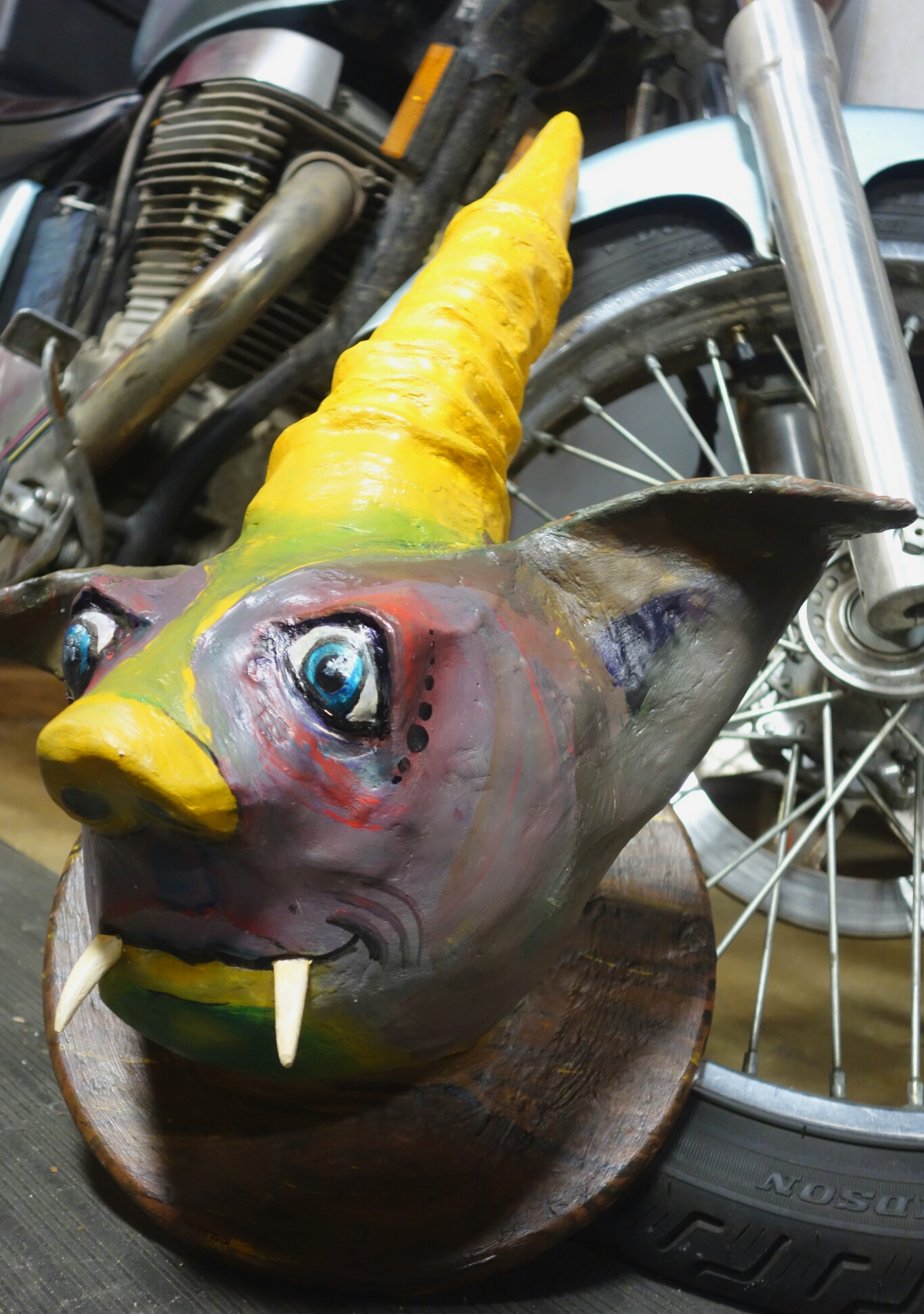At the KBXE radio studio in Bemidji, MN there is a painting of a rhinoceros and a knight on a motorcycle. I saw that painting every time I went to the station, every time I played Disc Jockey for an evening. It became one of my favorite pieces. This rhino in Missoula reminded me of that painting; the rhino racing the motorcycle. I loved it.